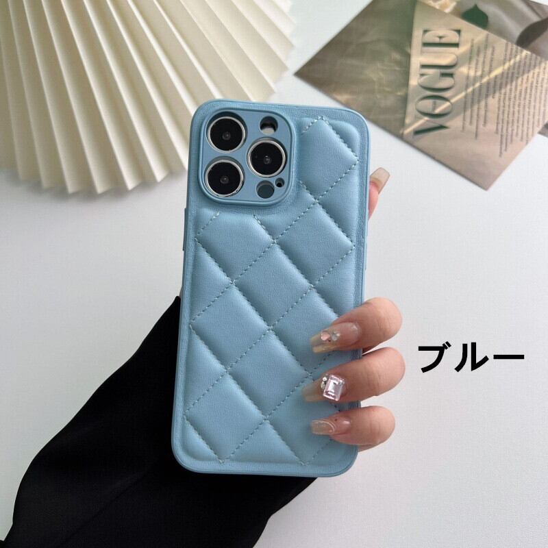 iPhone 15 PLUS ケース 韓国 おしゃれ キルト柄 大人かわいい