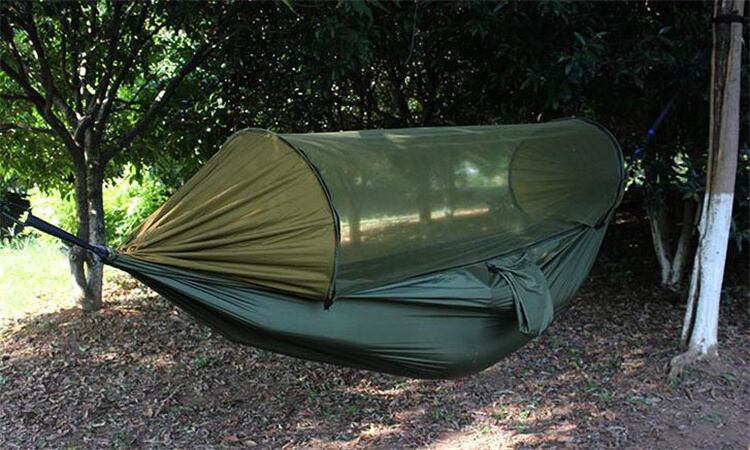 高レビュー多数超特価中 ハンモック 防蚊 ポール付き 新品 パラシュートクロス クイックオープニング